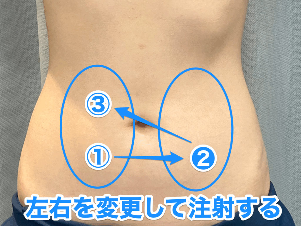 お腹や太ももは皮下脂肪が多いので、注射の痛みが少ないですよ。